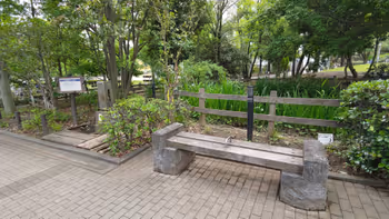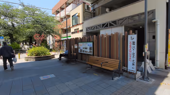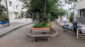 ペン太区民キャンパス周辺のベンチ【都立大学駅】やくも文化通り 区民キャンパス付近の休憩場所10 Min. Fußweg屋外409000