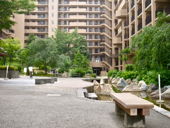 苺チワワA lush, open space with a babbling brookNijo Station | Famile Garden Nijo Station | Front Public Open Space | Rest Spot6 min walkoutdoo...tableeatingmeetin...family156200
