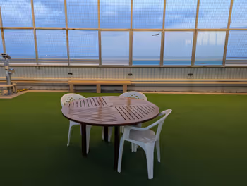 ペン太なんと足湯がある北九州空港 南展望デッキの休憩場所242000