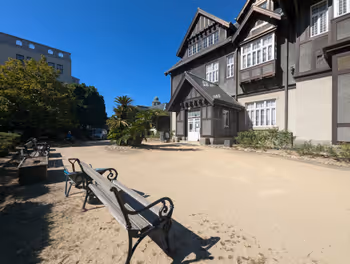 ペン太門司の洋館前で【門司港駅】旧門司三井俱楽部前の休憩場所2 min walk屋外175000