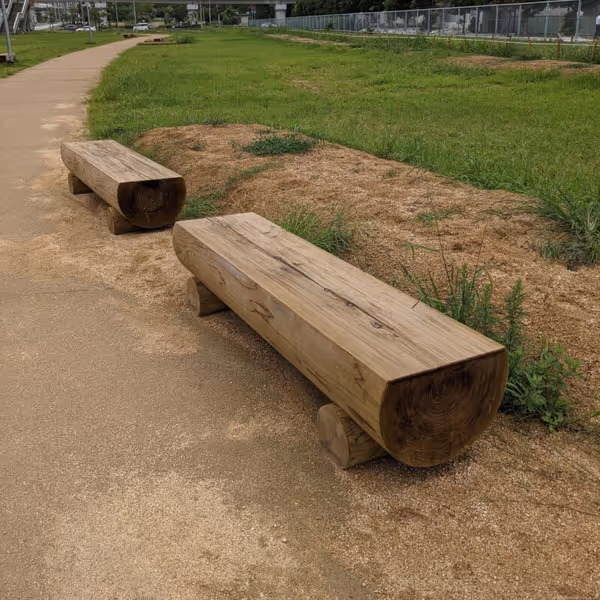 ポートライナー高架下にベンチ設置。休憩や待ち合わせに利用可能。