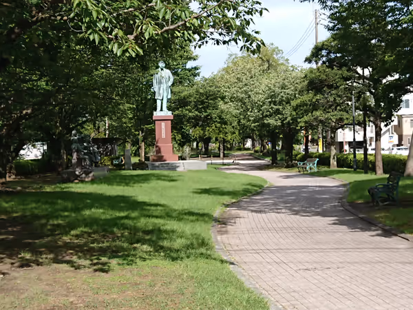 現在 日陰あり直射日光を避けられる、今の時間帯に最適なスポットです屋外 - Takunohashi Station | Benches around the Statue of Masayoshi Matsukata | Rest Spot