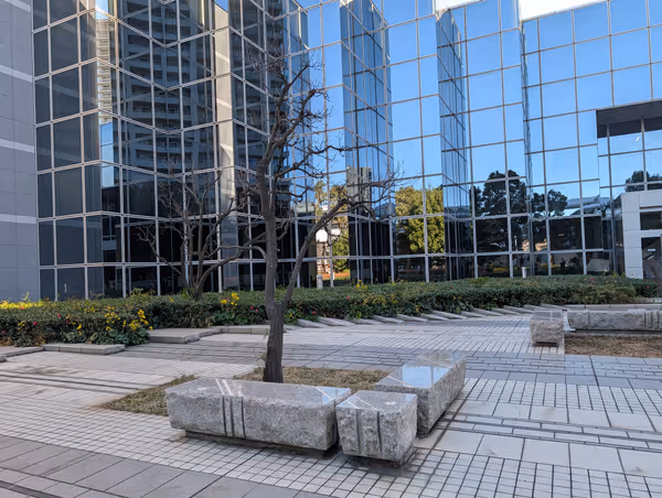 鹿島田駅周辺で現地調査したベンチの中から、今の時間に日陰のベンチでテイクアウトを楽しめる休憩スポットを紹介しています。