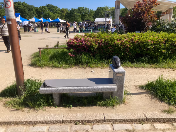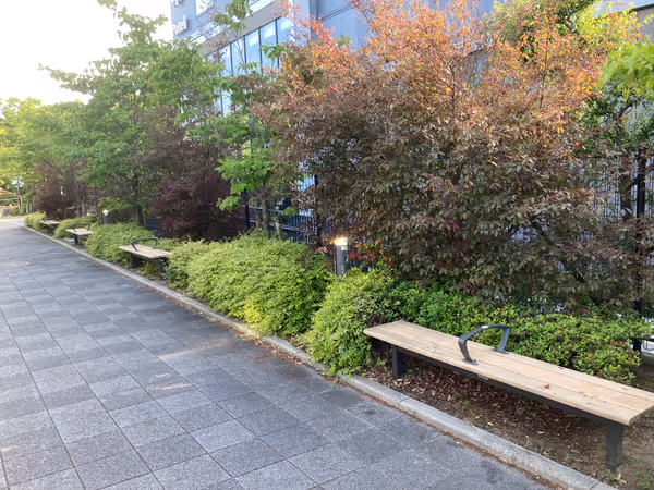 梅小路京都西駅周辺で現地調査したベンチの中から、今の時間に日陰のベンチでテイクアウトを楽しめる休憩スポットを紹介しています。