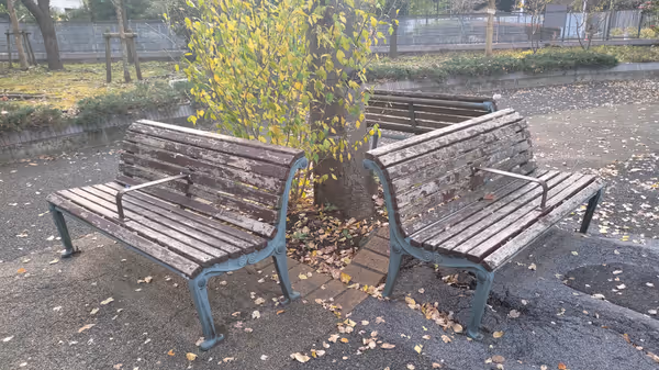 青山一丁目エリア周辺で現地調査したベンチの中から、今の時間に日陰のベンチでテイクアウトを楽しめる休憩スポットを紹介しています。