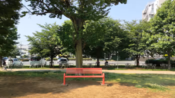 赤い公園の赤いベンチ!