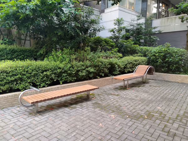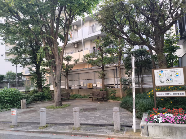 大崎広小路駅周辺で現地調査したベンチの中から、今の時間に日陰のベンチでテイクアウトを楽しめる休憩スポットを紹介しています。