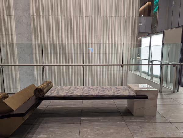 東京ミッドタウン八重洲にある、照明のような美しいアートベンチと夜景が楽しめるベンチを紹介。休憩...
