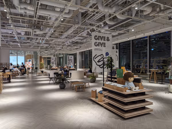 ヤンマー東京のHANASAKA SQUAREは、桜吹雪のインスタレーションと屋内緑化が斬新。開...