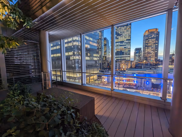 東京駅八重洲中央口グランルーフデッキは、電源ありのお洒落なテレワークスポット。 無料で景色を楽...