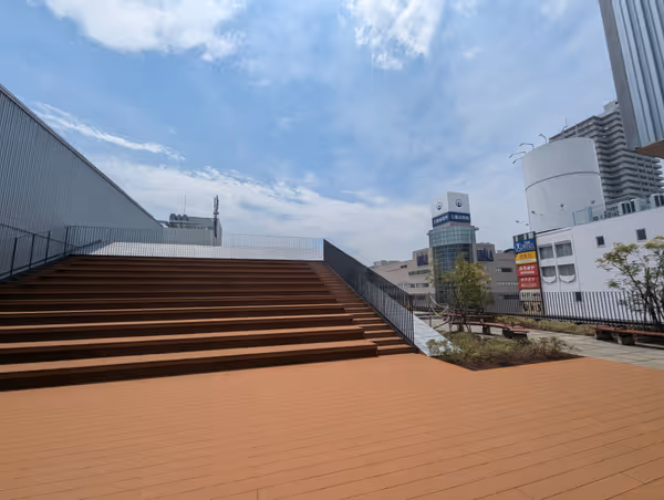 1 min a pie屋外飲食土浦駅西口の土浦図書館屋上ガーデンは、階段ベンチやプニョプニョスツールがあり、ぼーっとしたり読...