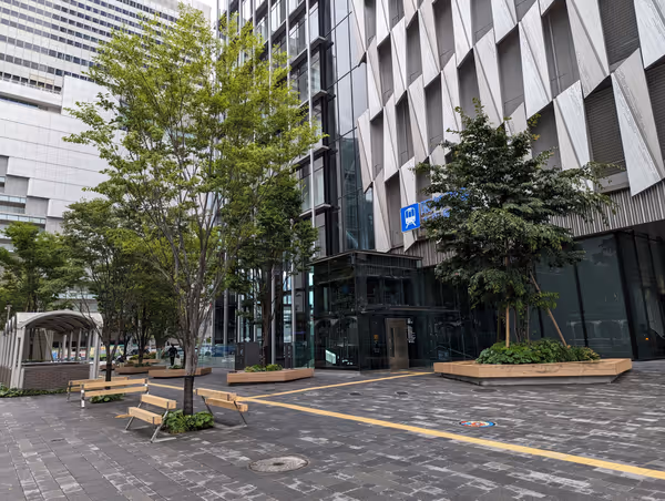 大阪・梅田エリア周辺で現地調査したベンチの中から、今の時間に日陰のベンチでテイクアウトを楽しめる休憩スポットを紹介しています。