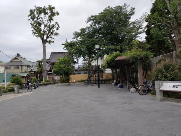 東十条駅近くの中十条公園。遊具やベンチ、トイレがあり、隣に真光寺も。子供連れや休憩に良さそう。