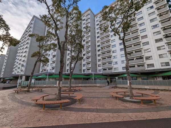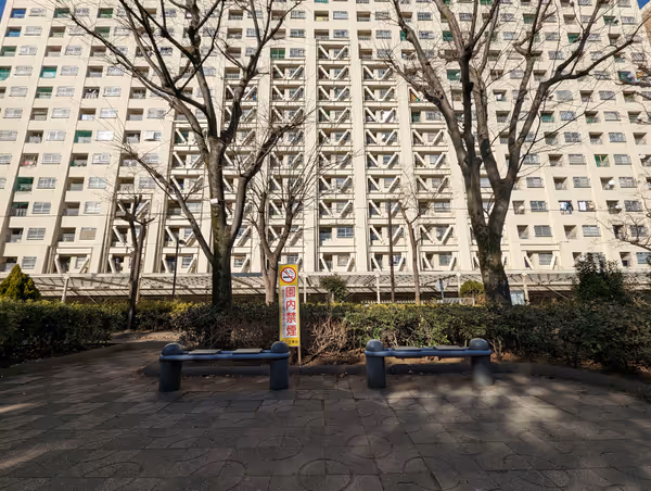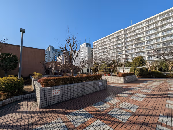 東陽町駅近くの南砂住宅4号棟前レストスペース。団地好き向け、休憩やお弁当に。