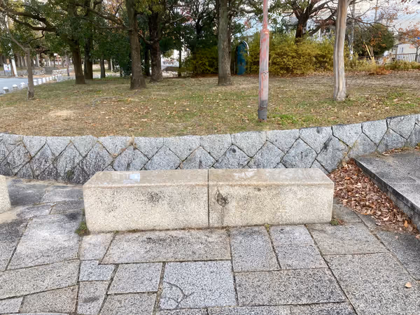 西宮駅北口から西へ、東川沿いに石造の腰掛けがある。