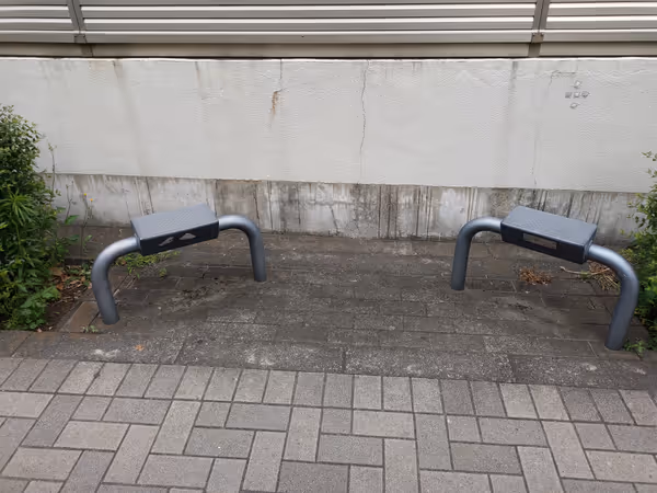 拝島駅近くの歩道に変わったベンチ。ちょっとした休憩に便利そう。