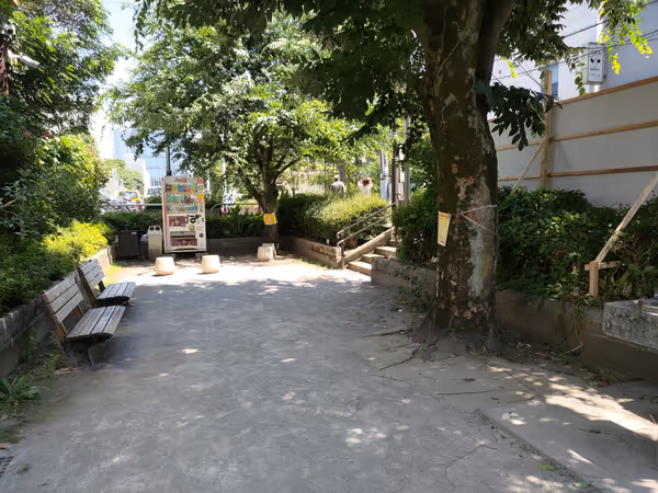 5 min à pied屋外飲食表参道近くの神宮前三丁目児童遊園は、休憩に最適なコンパクトな空間。ベンチと自販機があり、散歩の...