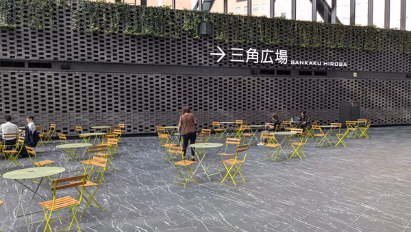 5 min à pied屋外飲食都庁前スマートベンチは、ハンガリー製サステナブル仕様。ワイヤレス充電やType-Cポート完備で...
