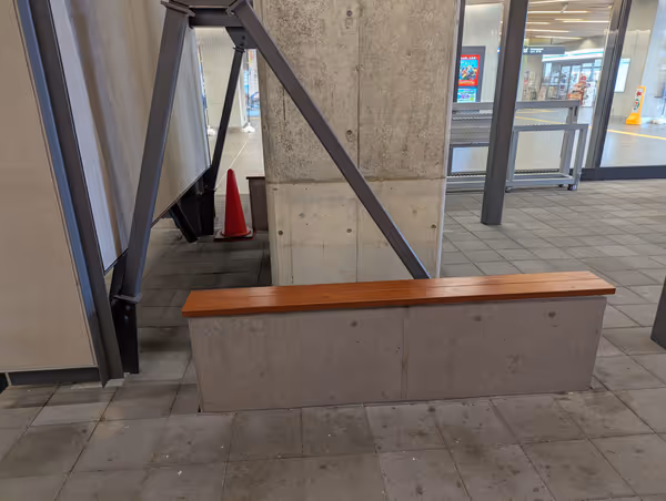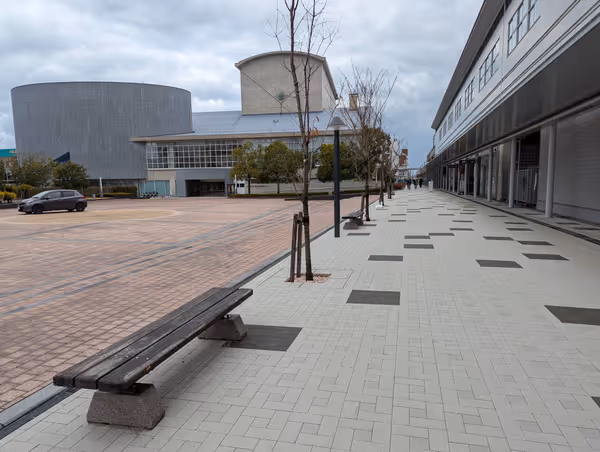 小松駅西口のKomatsu九周辺に座れる場所あり。待ち合わせや休憩に。近隣のベンチも紹介。