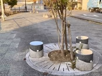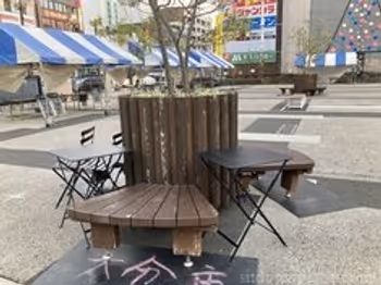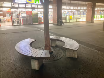 大分県の駅近くにあるベンチ