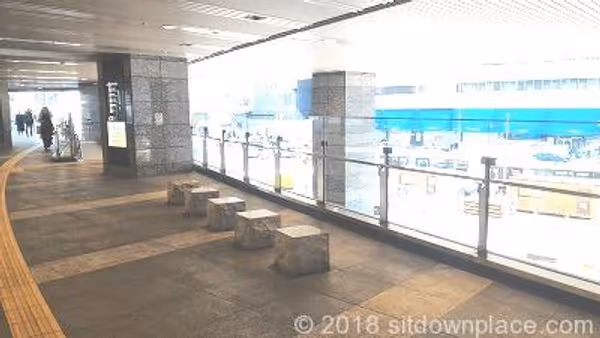 現在、大阪・梅田エリア周辺は太陽が真上にあるため、日陰のベンチが少なくなっています。