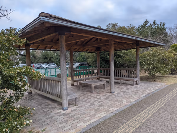 【松江しんじ湖温泉駅】鎮守の森散策路入口の休憩場所