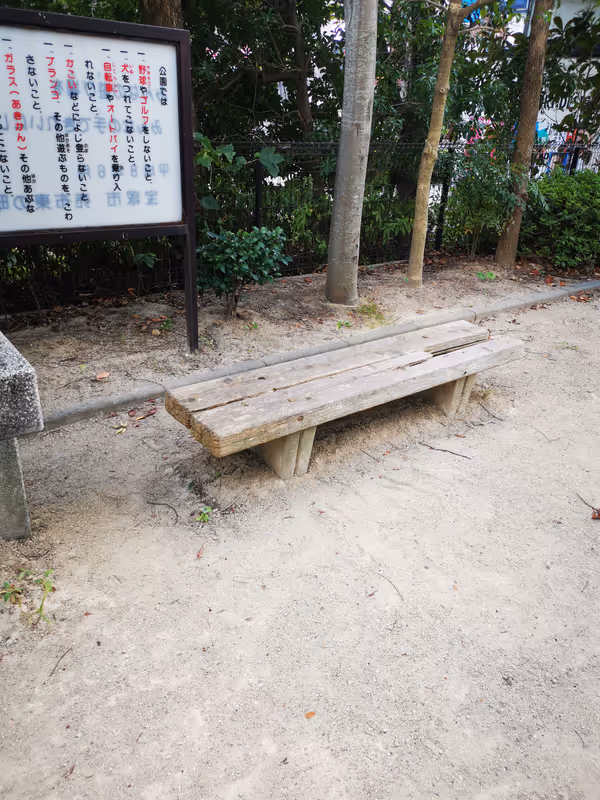 売布神社駅周辺で現地調査したベンチの中から、今の時間に日陰のベンチでテイクアウトを楽しめる休憩スポットを紹介しています。