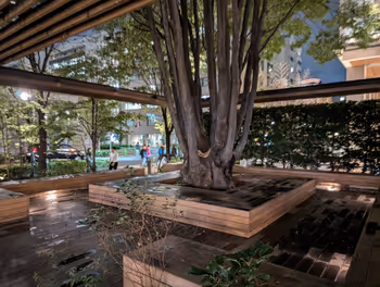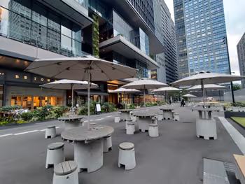 ペン太洗練されたトーチの広場【三越前駅】TOKYO TORCH Parkの休憩場所도보 2분집 밖테이블 좌석식사재택근무만남2131000