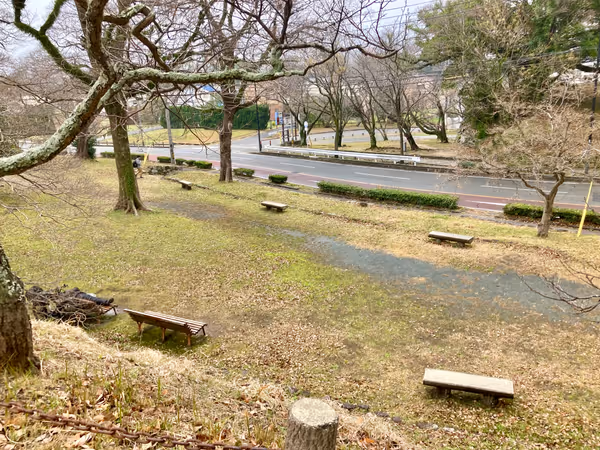 舞鶴公園、つつじ園近くの道路沿いに座れる場所が設置。