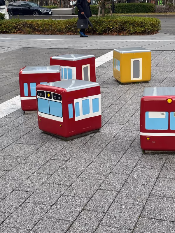京急モチーフのスツール。展示と実用を兼ね備えたユニークな家具。