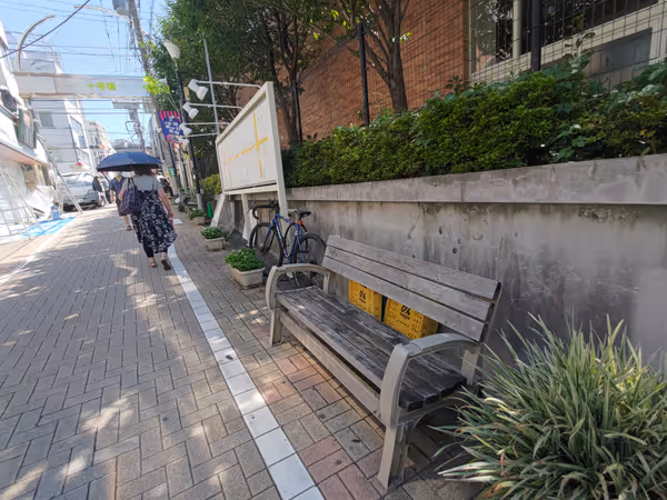 笹塚駅周辺、十号通り商店街のベンチで休憩はいかが? 富士見丘中高横にベンチあり。