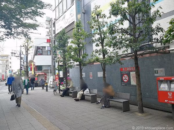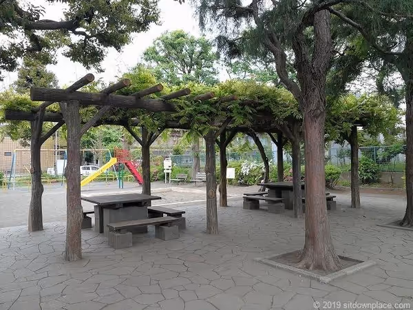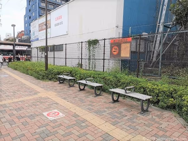 成城学園前駅周辺で現地調査したベンチの中から、今の時間に日陰のベンチでテイクアウトを楽しめる休憩スポットを紹介しています。