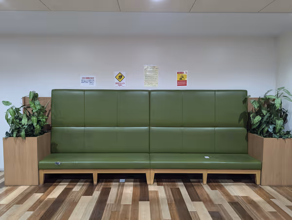 黒崎駅近く、コムシティは待ち合わせや休憩に最適。ベンチやソファが多数あり、利用しやすい。