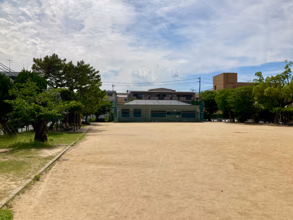 甲子園口駅徒歩5分の公園。遊具とグラウンドがあり、フェンスで区切られている。