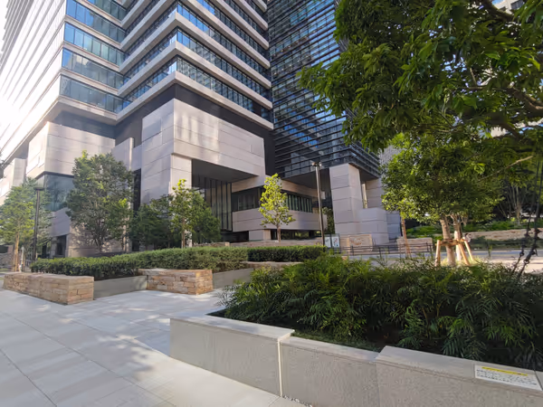 霞が関駅近く、飯野ビルディング前の公開空地は、緑とベンチがあり休憩やテレワークに最適。お弁当も...